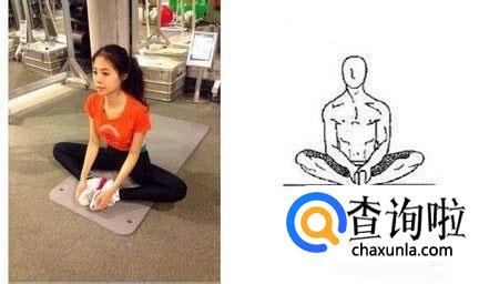 拉伸者坐于垫上,保持双脚屈膝打开至脚掌相对,双手放于脚背上或者膝盖上,缓慢用力下压以拉伸大腿内收肌肉群。