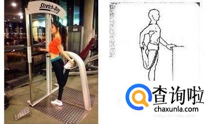 拉伸者一只手抓住固定物保持身体平衡,另一只手抓住同侧的脚背,并缓慢用力向臀部拉伸,保持15秒后,然后换另外一侧。