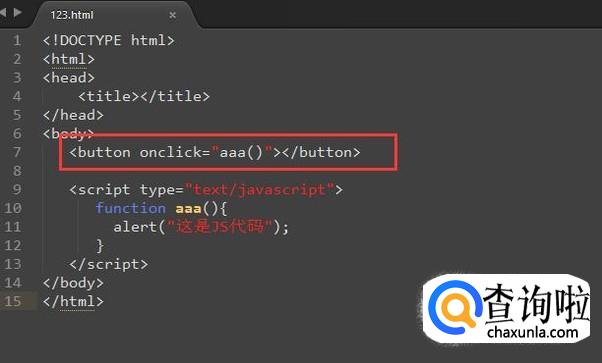 接下来可以定义一个button按钮,通过其click事件来调用JS的代码,如下图所示