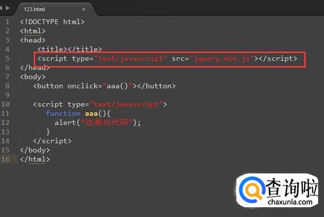 当然,如果调用的JS代码是外部的文件,则需要在开头的head标签内进行引入才可以使用,如下图所示