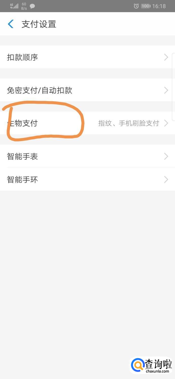 进入【支付设置】界面后,我们点击【生物支付】栏。