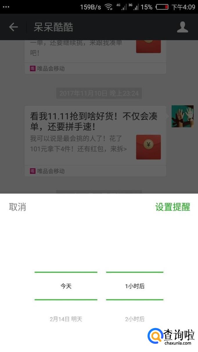 还可以给聊天中的消息直接设置日期提醒,这样聚会、约会都不会再错过啦