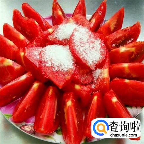 我自己喜欢那种大颗粒的白糖,吃起来口感特别好,搭配上西红柿糯糯的口感真的很好吃。将白糖均匀洒在西红柿里面,不要太多不然太甜了长肉肉哦。撒好白糖等两三分钟就要吃,时间久了西红柿就会变软,这样是很难吃的。