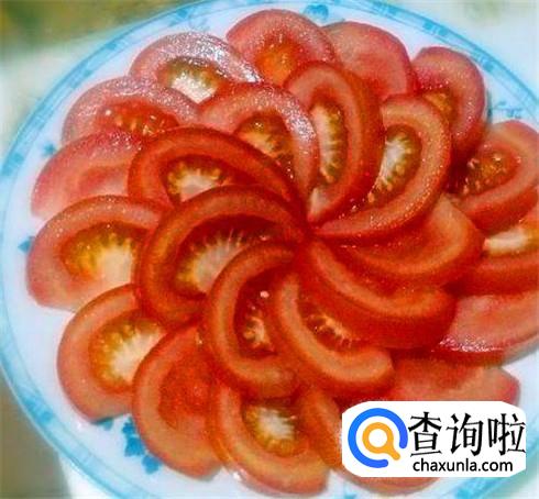 你要是有耐心,把西红柿摆成一朵花,看起来赏心悦目的,你要是没耐心,直接放进盘子里就行。