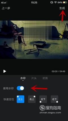 调整好水印的位置,片头,封面后,点击右上角的“生成”即可将加了马赛克的视频导出来。