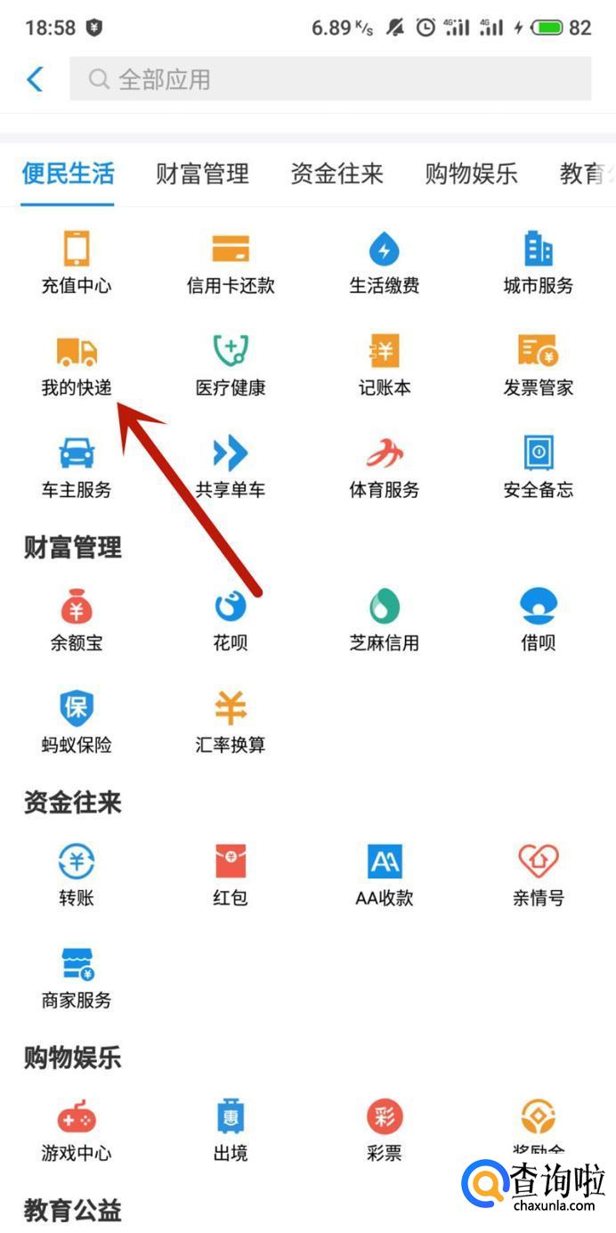 进入之后,点击“我的快递”,如图所示。