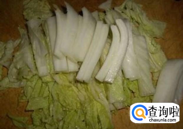 将大白菜切成两半,再将大白菜切成方块状,用清水洗干净备用。