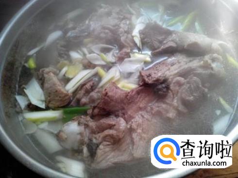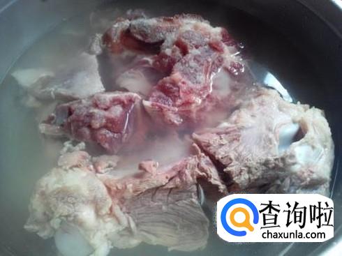 煮锅里放适量冷水,把骨头下入锅内,等水煮开后,去掉浮沫。