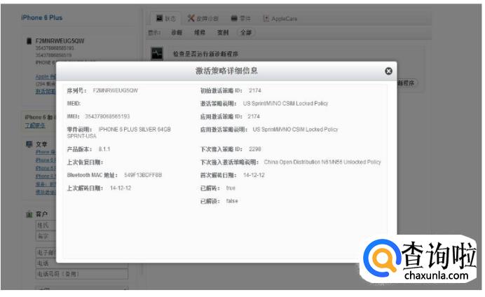GSX 查询被称为“激活策略”,可以获取手机的相关信息,包括手机的维修记录、手机型号、手机版本等信息,只能由官方进行查询,当然你也可以在某宝上购买付费查询,如果查询结果显示“已解锁”项为 false,就说明不是无锁。
