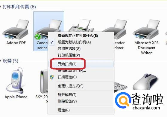 右键单击扫描仪,点击“开始扫描”,也能启动扫描仪。