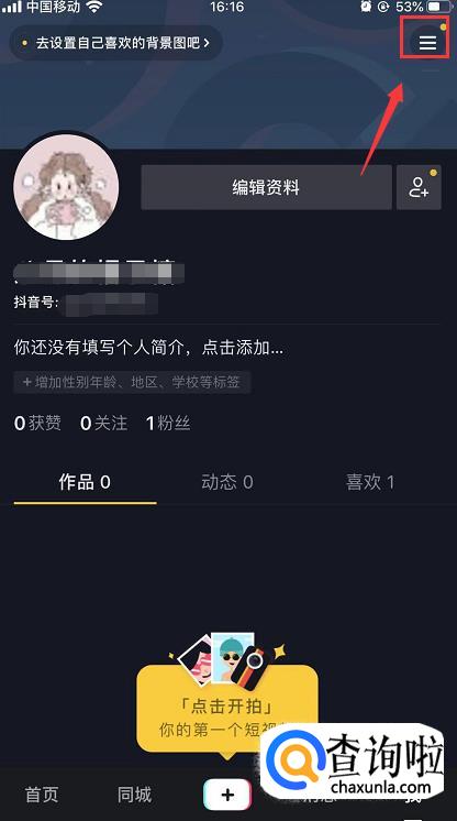 进入我的页面后,在右上角可以看到一个三横符号,点击一下。