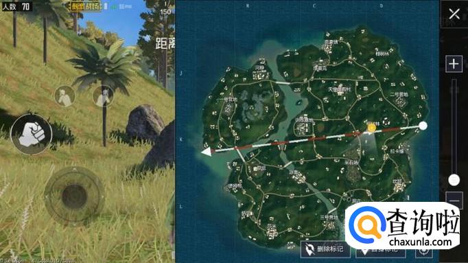 然后看看飞行路线,选择远离飞行路线的地方打野吃鸡才是上策