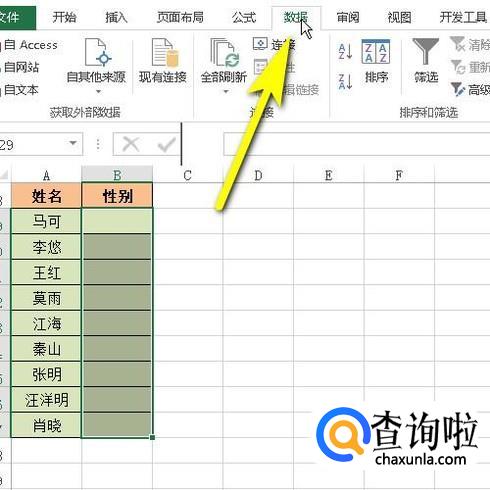 把B29:B37全选中。再点开数据选项卡