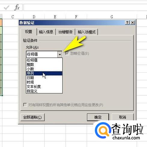 在允许这里点击下拉按钮,弹出菜单再点:序列