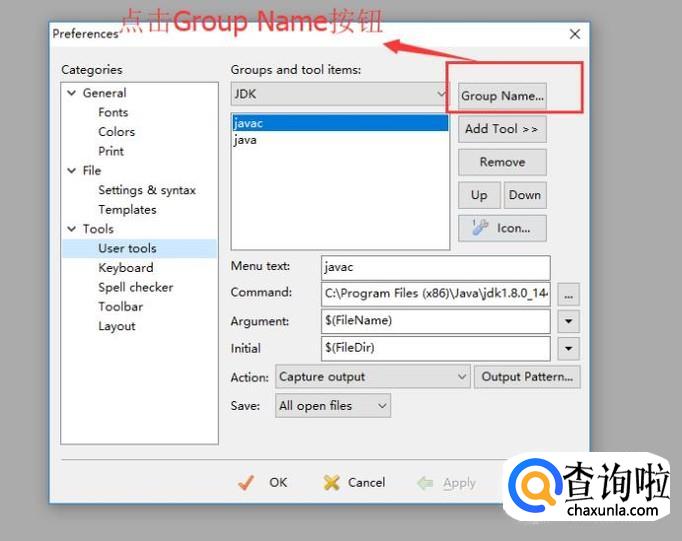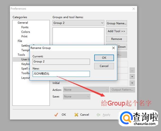 接下来会弹出Preferences界面,我们点击Group Name按钮,如下图所示