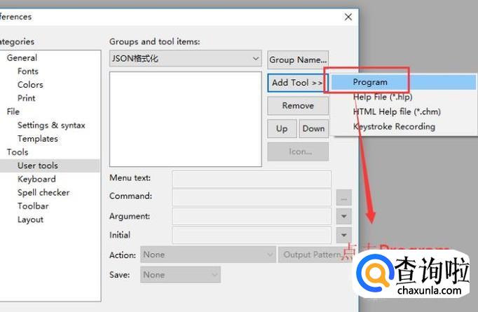 然后点击Add Tool按钮,在右侧出现的下来菜单中选择Program选项,如下图所示
