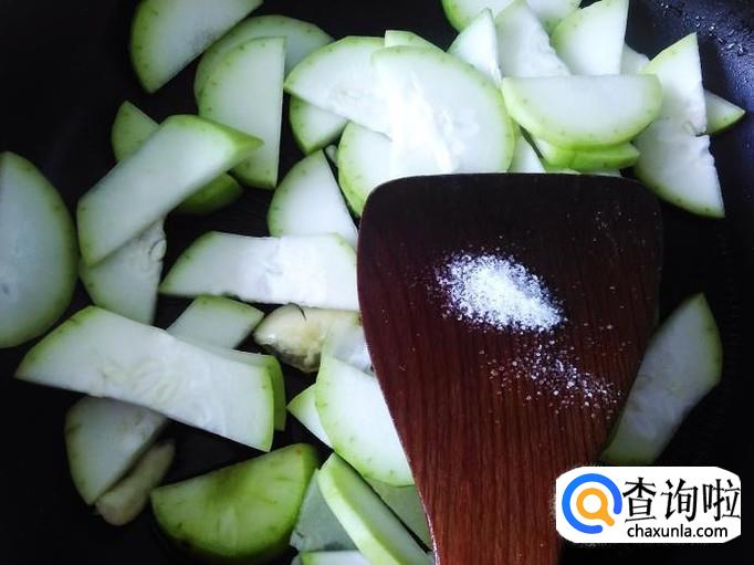 然后放葫芦片进去,加适量的盐,洒点水花。
