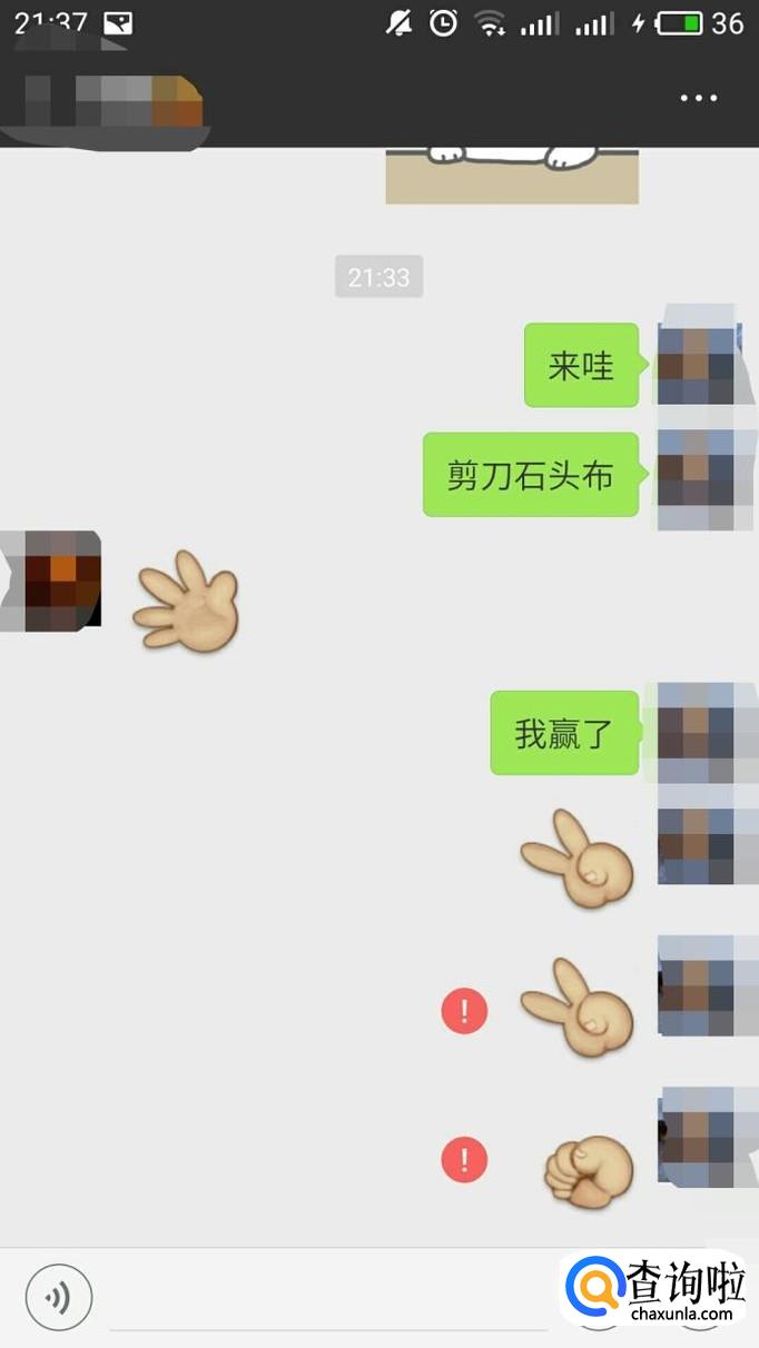 你知道微信上玩石头剪刀布如何必胜吗?一起来看看吧。