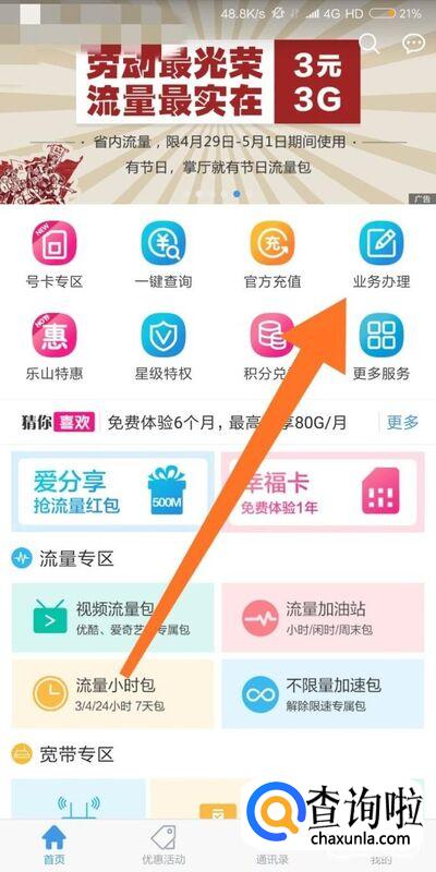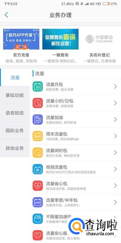 进入业务办理之后,根据自己的需要来选择流量套餐。