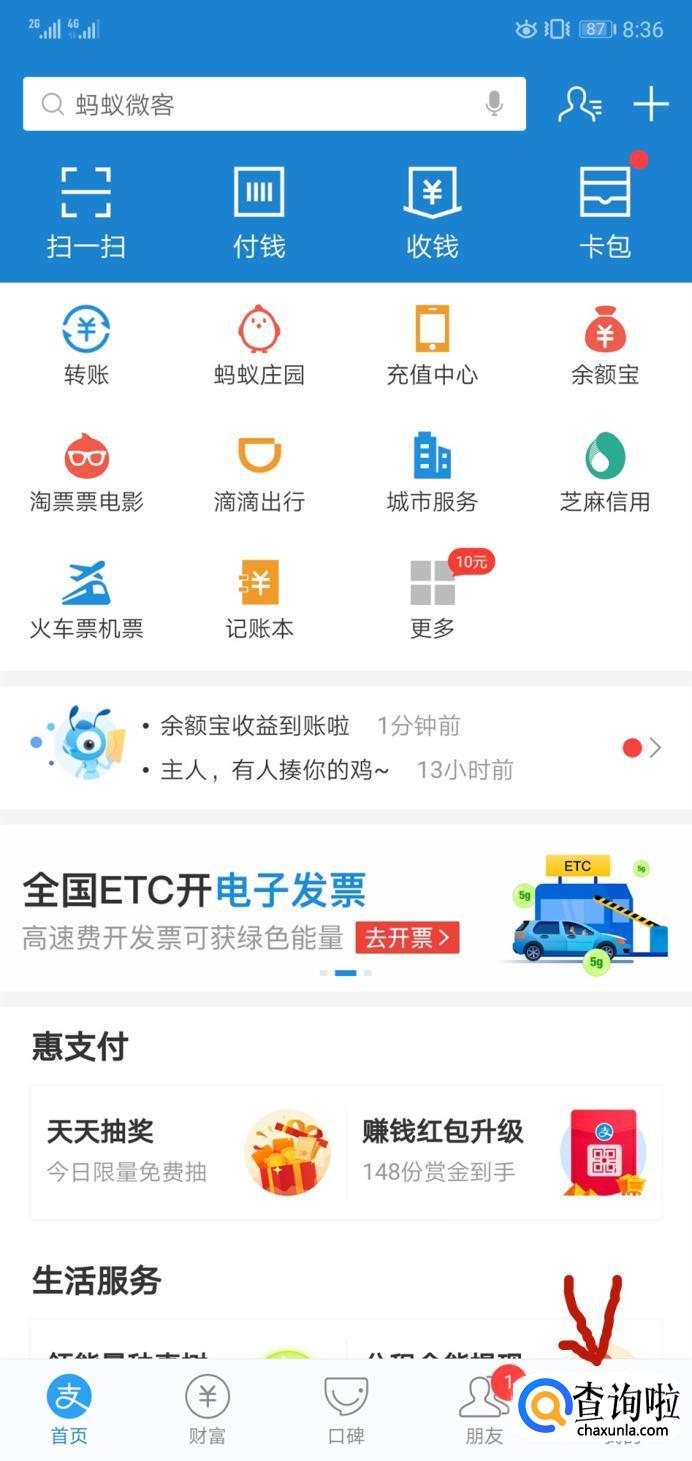 然后打开支付宝,进入首页。