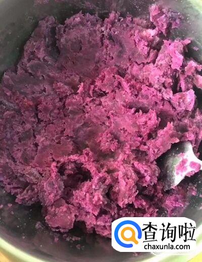 蒸熟以后取出来放入一个盆中,加入适量的白糖,用勺子把它压成泥
