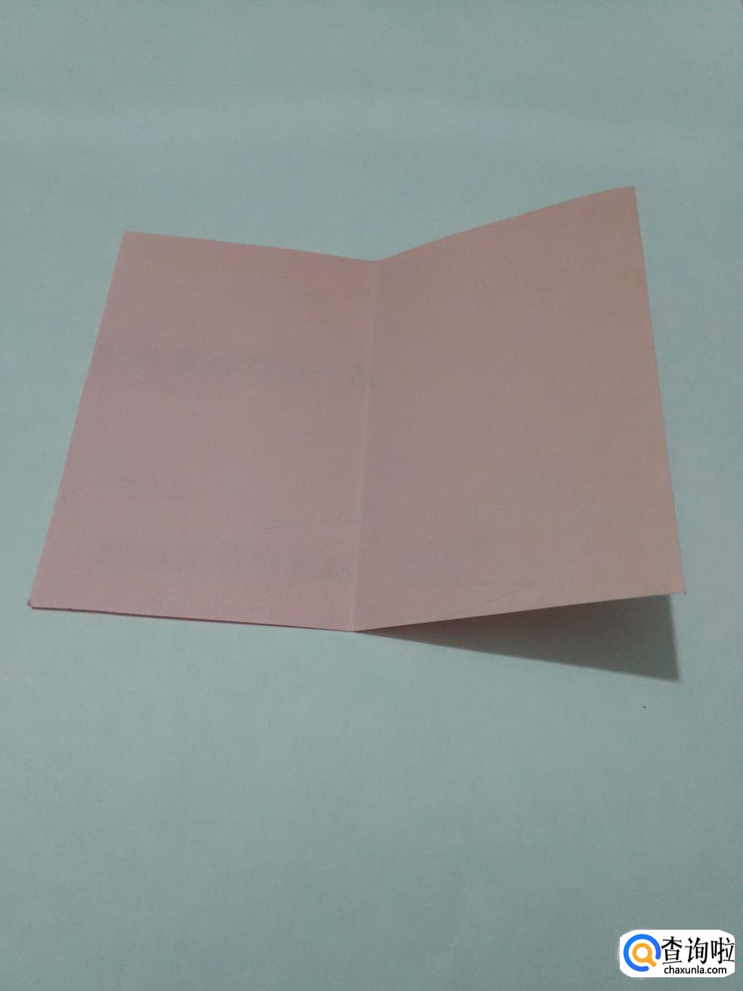 先从彩纸上裁下一个长方形,然后把长方形对折,再打开。