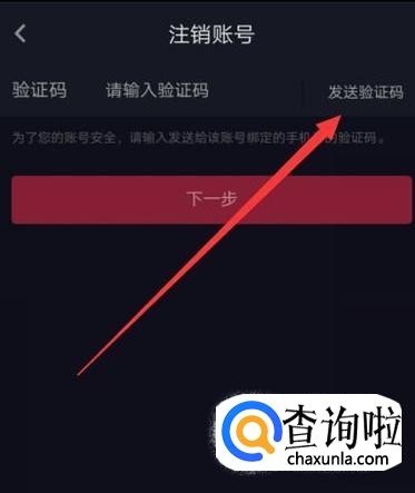 点击“发送验证码”,将其填写好之后,点击下一步即可,如图所示。