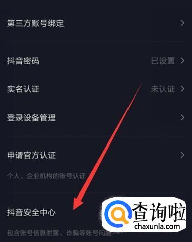 进入之后,点击“抖音安全中心”,进入下一页面,如图所示。