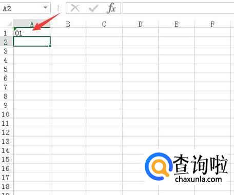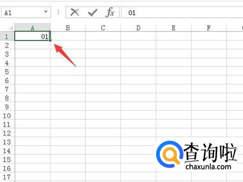 打开excel之后我们选择单元格然后在单元格内输入01,如图所示:
