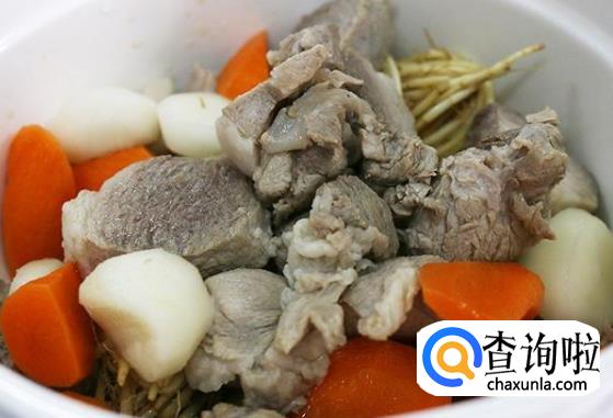 1.甘蔗洗净,去皮,剁成5厘米长的段。马蹄洗净,去皮,一切两半,胡萝卜洗净,去皮,切成3厘米长的段。白茅根洗净,去皮,切成5厘米长的段。
