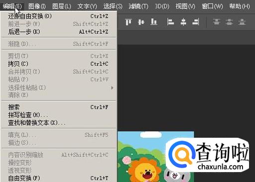 接着,鼠标移到菜单栏这里,点击:编辑。