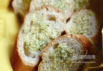 用黄油做的蒜香面包也是超级美味的,在面包上涂抹上一层黄油,再铺上蒜末,进烤箱烤制一会儿就香味四溢了。