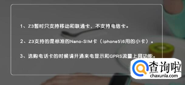 1、Z3暂时只支持移动和联通卡,不支持电信卡;