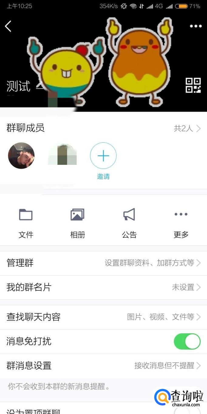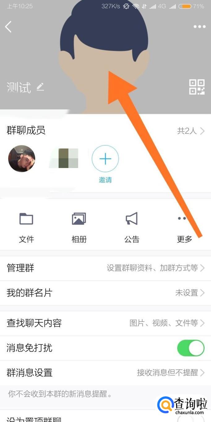 进入到群聊天界面后,点击屏幕右上角的双人头像。