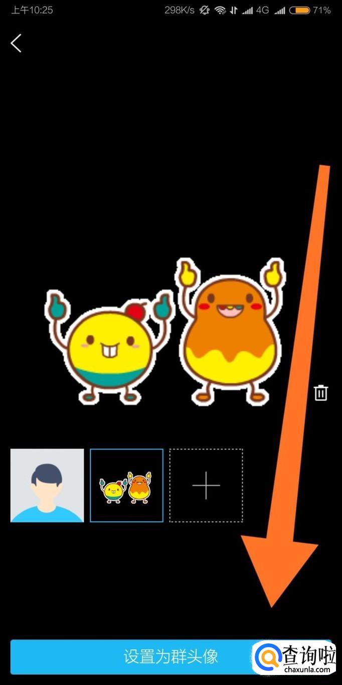 再选中新上传的头像预览图,最后点击屏幕下方的“设置为群头像”即可。