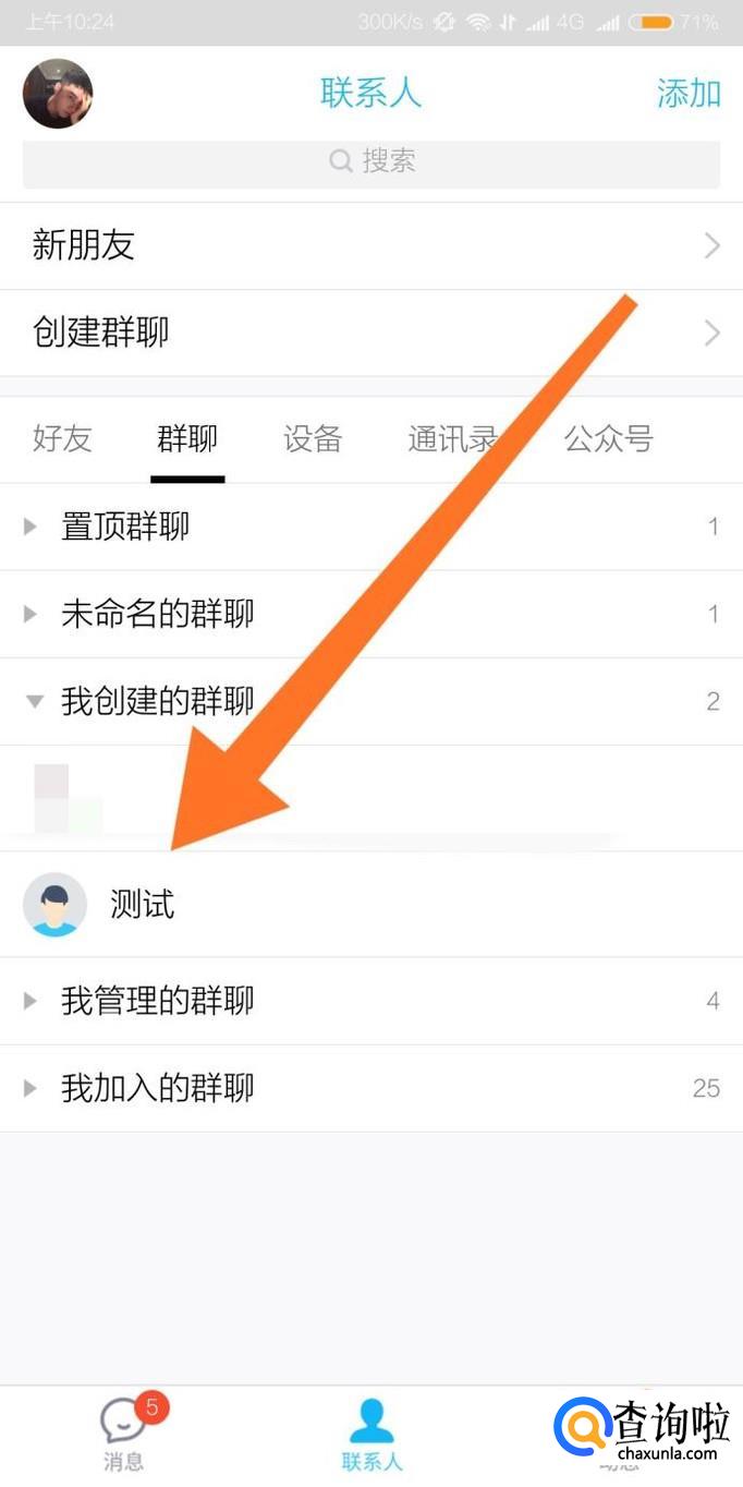 我们首先进入手机QQ联系人页面,点击进入需要更改头像的QQ群。