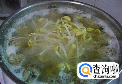 把鸡肉炒到变颜色后,加入鲜香菇和豆芽,加入适量的清水,大火煮。