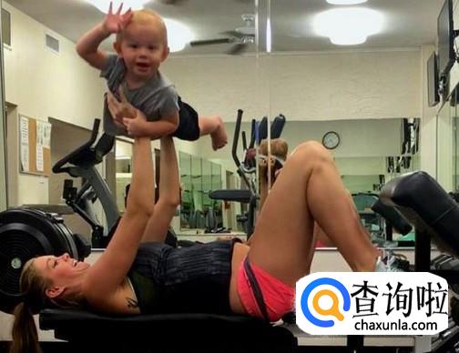 健身带着小孩子。