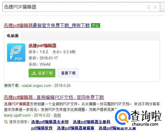 在搜狗中去搜索软件关键词PDF编辑器,接着进行新建