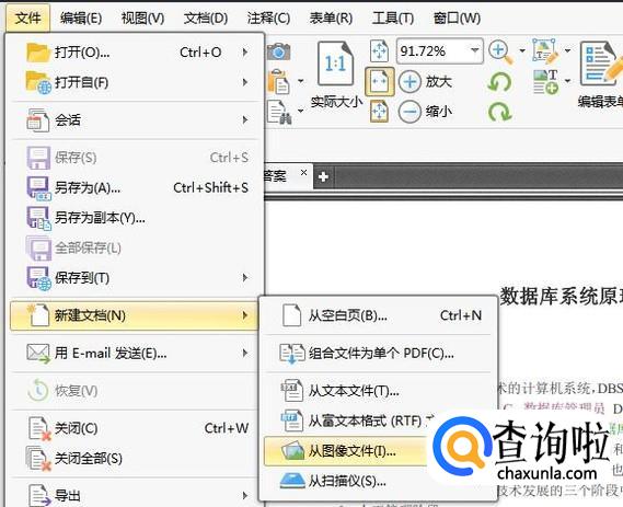 点击左上角的文件下的新建文档按钮,这里我们新建从图像文件新建PDF文件