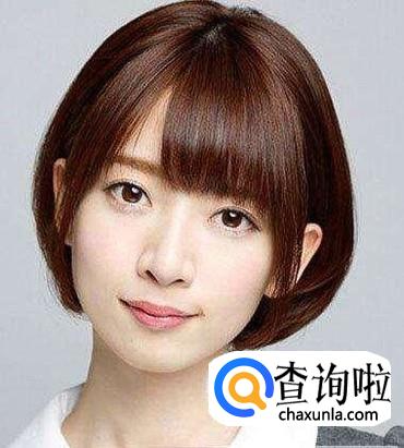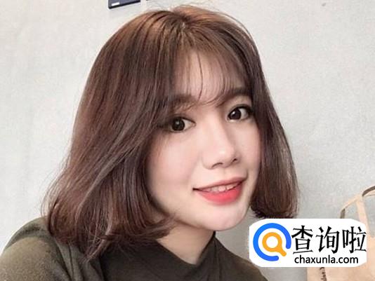 内扣的波波头,薄薄的空气刘海使这个头型更加具有少女感,通常这款波波头都是亚麻色,是很多女大学生喜欢的造型模本。