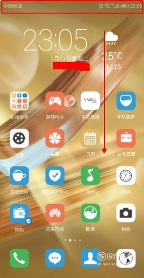 从手机的顶端向下滑动,从而调出隐藏菜单。