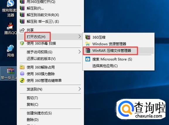 弹出的界面,我们点击打开方式,弹出的界面,我们点击WinRAR压缩文件管理器;