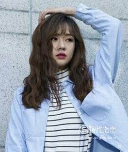 喜欢韩范的女生可以试试这款,像是这样的中长发打理出来的棕色的发色配上微卷发的造型是很不错的。