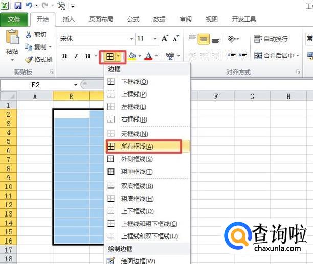 之后我们点击边框边上的下拉箭头,弹出的界面,我们点击所有边框;