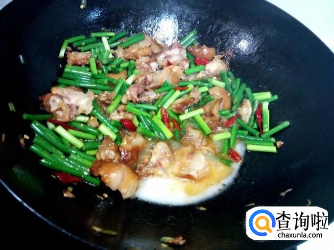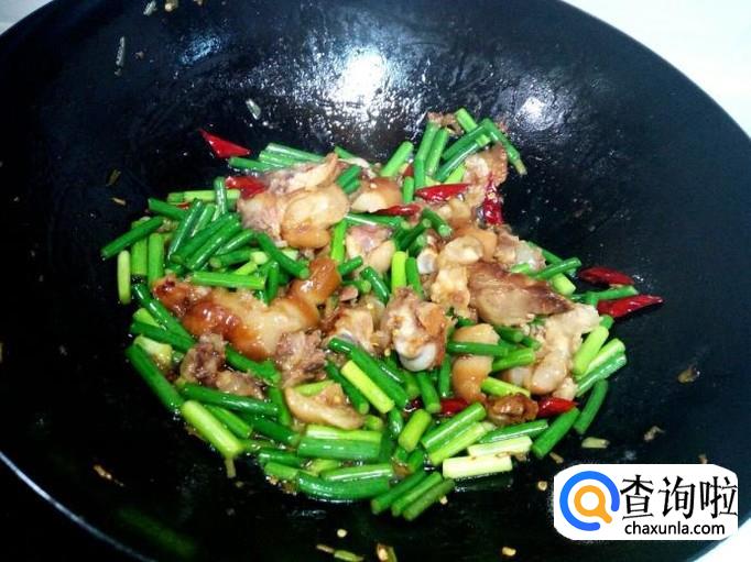炒至蒜薹断生,放入勾兑好的薄芡。芡汁粘稠后,放入味精,关火出勺。