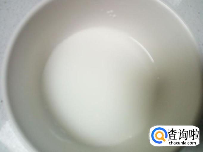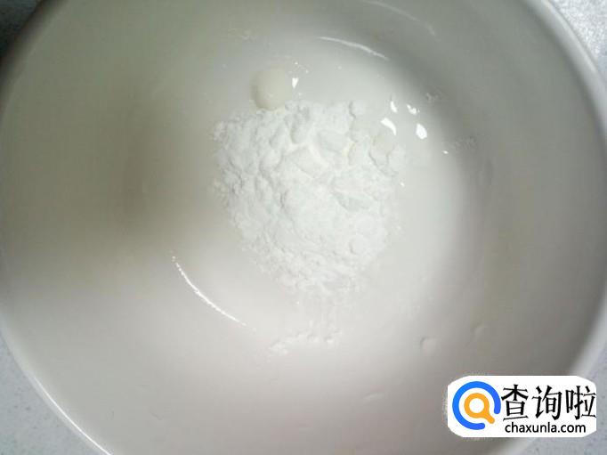 碗里放入一小匙儿淀粉,兑水,勾成薄欠。