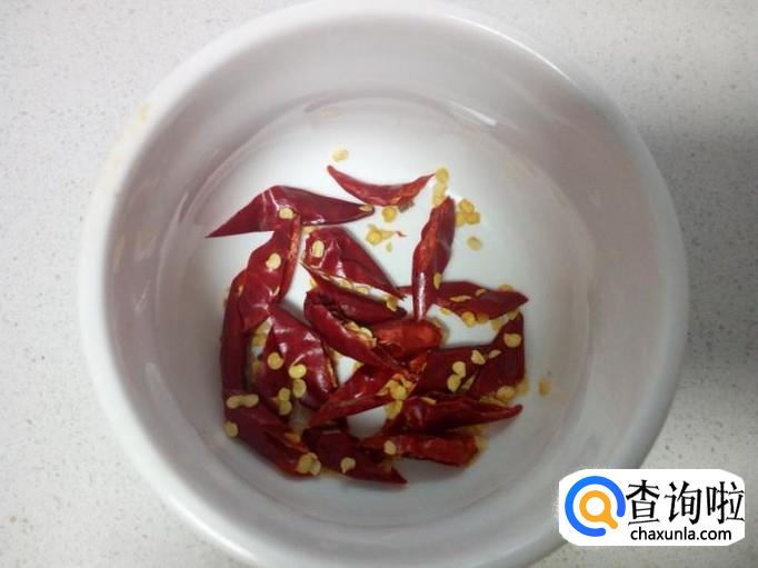 红干椒用水清洗干净,控干水分,斜刀切成段。切好葱,姜备用。