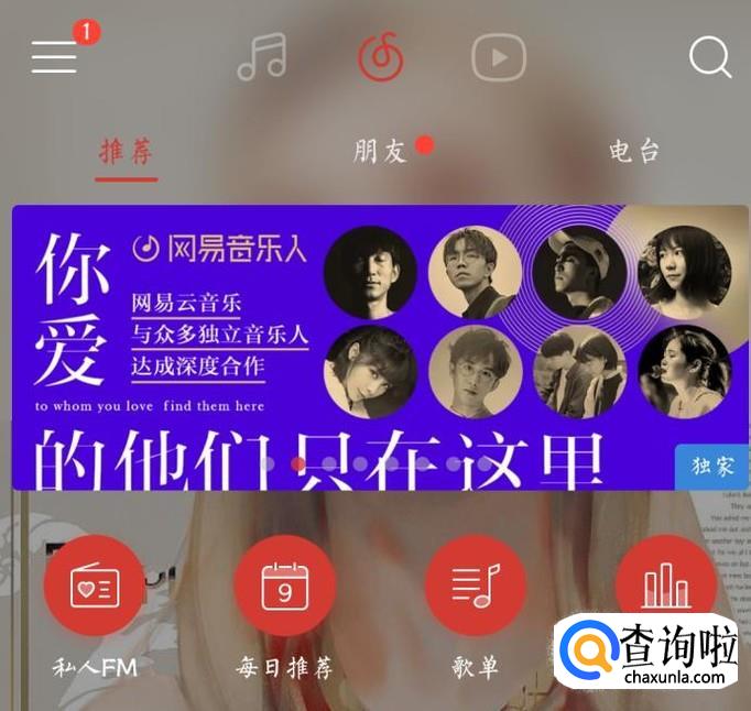 这里以网易云音乐为例,打开网易云音乐,进入音乐首页。