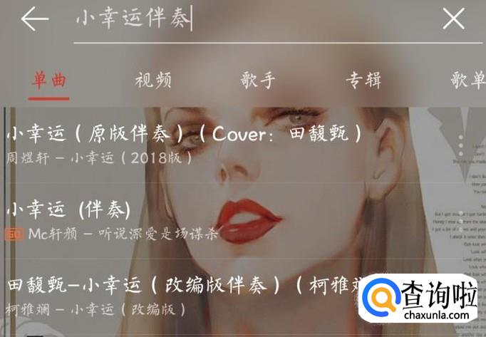 点击首页右上角的搜索,输入想要寻找的歌名+伴奏,点击搜索。